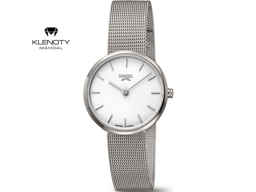 V kolekci hodinek BOCCIA TITANIUM naleznete převážně jednoduché, elegantní nebo sportovně elegantní modely, které se i díky své příznivé ceně staly velmi oblíbené. V anketě německé agentury markt intern každoročně vítězí v kategorii náramkové hodinky v ceně do 100 Euro a v ceně 100 – 300 Euro. Ve většině modelů jsou použity kvalitní švýcarské strojky Ronda, dále japonské Seiko a Miyota, skla jsou vyrobena z minerálu nebo safíru.